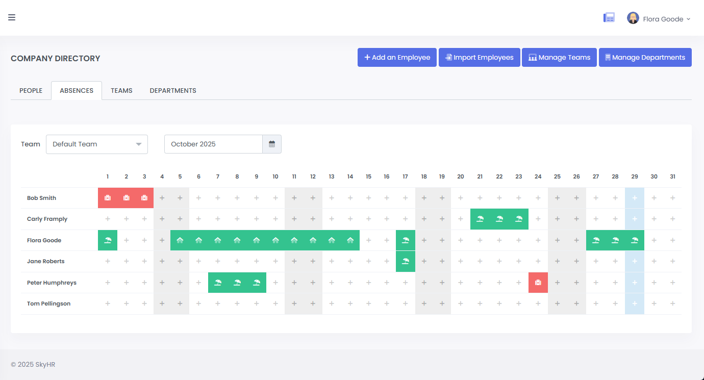 SkyHR’s AI-powered absence tools make time off simple, fair, and fully automated. No chasing, no spreadsheets, no stress — just happy teams and clear calendars.